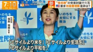 【悲報】社民党「ミサイルより米を」「ミサイルより生活を」「ミサイルより平和を」