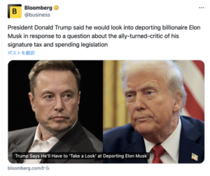 トランプ大統領「イーロン・マスク氏の国外追放を検討してるところだ」