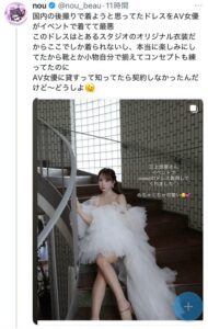 【悲報】まんさん「いやー!着ようと思ってたウエンディングドレスをセクシー女優が着てるー!!」→炎上wwwwwwwww