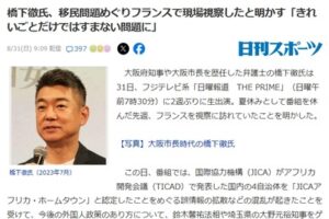 【速報】橋下徹氏「フランスに視察し移民問題の悲惨な実態を見てきました。これは、きれいごとだけではすまない」
