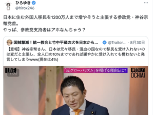 【悲報】ひろゆき「移民を1200万人まで増やそうとする参政党。支持者はアホなんちゃう?」