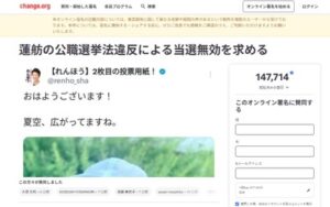 【公職選挙法違反疑惑】立憲・蓮舫氏の当選無効を求める署名が147,714人突破