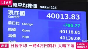 【悲報】日経平均、偽りの米雇用統計に騙されて暴落