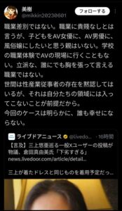 【画像】女さん「セクシー女優を差別するのは職業差別ではない」
