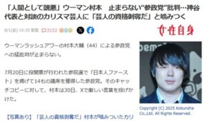 ウーマン村本「日本人ファーストって自分たちのことしか考えてませんってことでしょ」 1: 名無し 2025/08/01(金) 18:57:53.15 ID:pOmeRAt20 ウーマンラッシュアワーの村本大輔(44)による […]