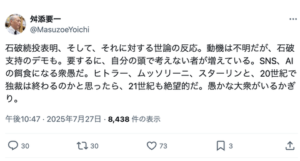 舛添要一「#石破辞めるなって言ってる奴らは自分の頭で考えられない愚か者」