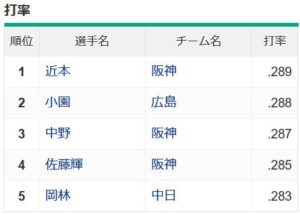 セ・リーグの首位打者の打率 .289 ( Д )゜゜
