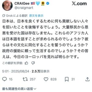 【アフリカホームタウン問題】外務省が全否定「特別ビザ検討すらない」「あくまで交流事業」名称のせいで相手国や海外報道が誤解? 1: 名無し 2025/08/25(月) 18:43:54.30 ID:p8nv8zbo9 産経 […]