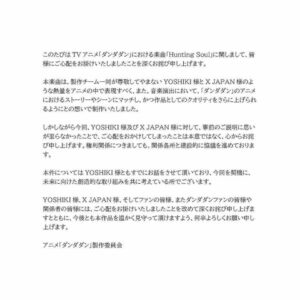 ダンダダン公式、XでYOSHIKIに謝罪して決着
