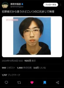 【悲報】X女子「犯罪者だから言うけどこいつの口元まじで無理」→4万いいね♡ (※画像あり)