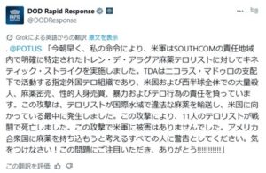 【速報】動画 米軍が南米麻薬組織に武力攻撃開始「米軍被害ゼロ、テロリスト全員死亡」トランプ大統領「米国に麻薬を持ち込もうとする全ての人に警告とする」 . @POTUS “Earlier this morning, on […]