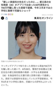 【画像】美人女教師さん、パパ活おぢから700万騙し取り逮捕wwwwwwww