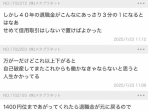 【悲報】40年の退職金をメタプラネット株にぶち込んでしまった投資家、咽び泣く