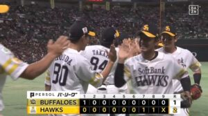 【ソフトバンク対オリックス15回戦】ソフトバンクが2-1でオリックスに逆転勝利!本拠地のオリックス戦11連勝!8回 今宮が決勝適時打!周東が9回に超美技!モイネロ6回1失点!