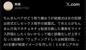 【生霊】子供部屋フェミさん、脳が拒否する怪ポストを投稿 ( ´∀`)つ 関連記事 【落ち着け】子供部屋フェミ「女たちよ、ウェディングドレス着るAV女優が許せないなら、AV300本星野源と健全AVキタニタツヤを表舞台から追 […]