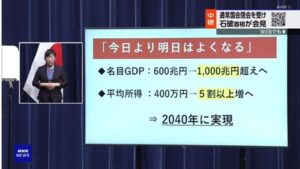 【悲報】石破総理が緊急会見「2040年に名目GDP1000兆円超え、平均所得5割以上増を実現」