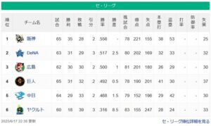 【6/17】●●●●●●●●●●●●●●●●●●●●●東京 ●●●●中日 読売● 広島 横浜○○