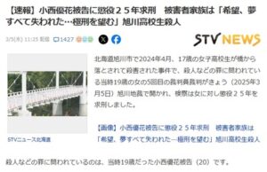 【速報】泣き崩れながら何度も謝罪する旭川リコの舎弟に求刑25年 舐め腐った拒否態度のリコは50年くらい? 1: 名無し 2025/03/05(水) 11:52:56.53 ID:vKAe9T1n0● BE:8665568 […]