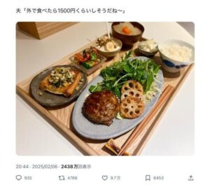【画像】夫「外で食べたら1,500円くらいしそうだね」妻「‥‥‥」
